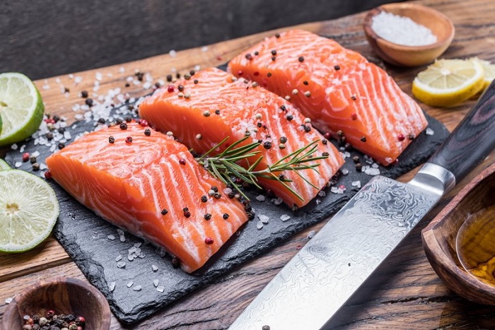 - Mirosul — somonul proaspăt miroase a mare, nu a pește.